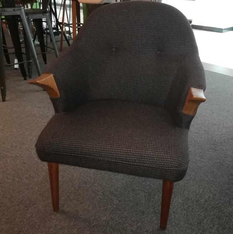 Color Available : Dark Brown Fabric seater with Wooden Legs & Armrest-Left 14 units only (While Stock Last)